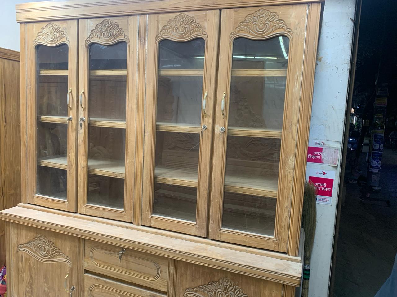 Premium quality 6/6 feet wooden showcase made from original Chittagong Segun (Teak wood). Strong, durable, elegant finishing—perfect for living room, dining space, or bedroom decoration. Affordable price: 46,000 Tk.